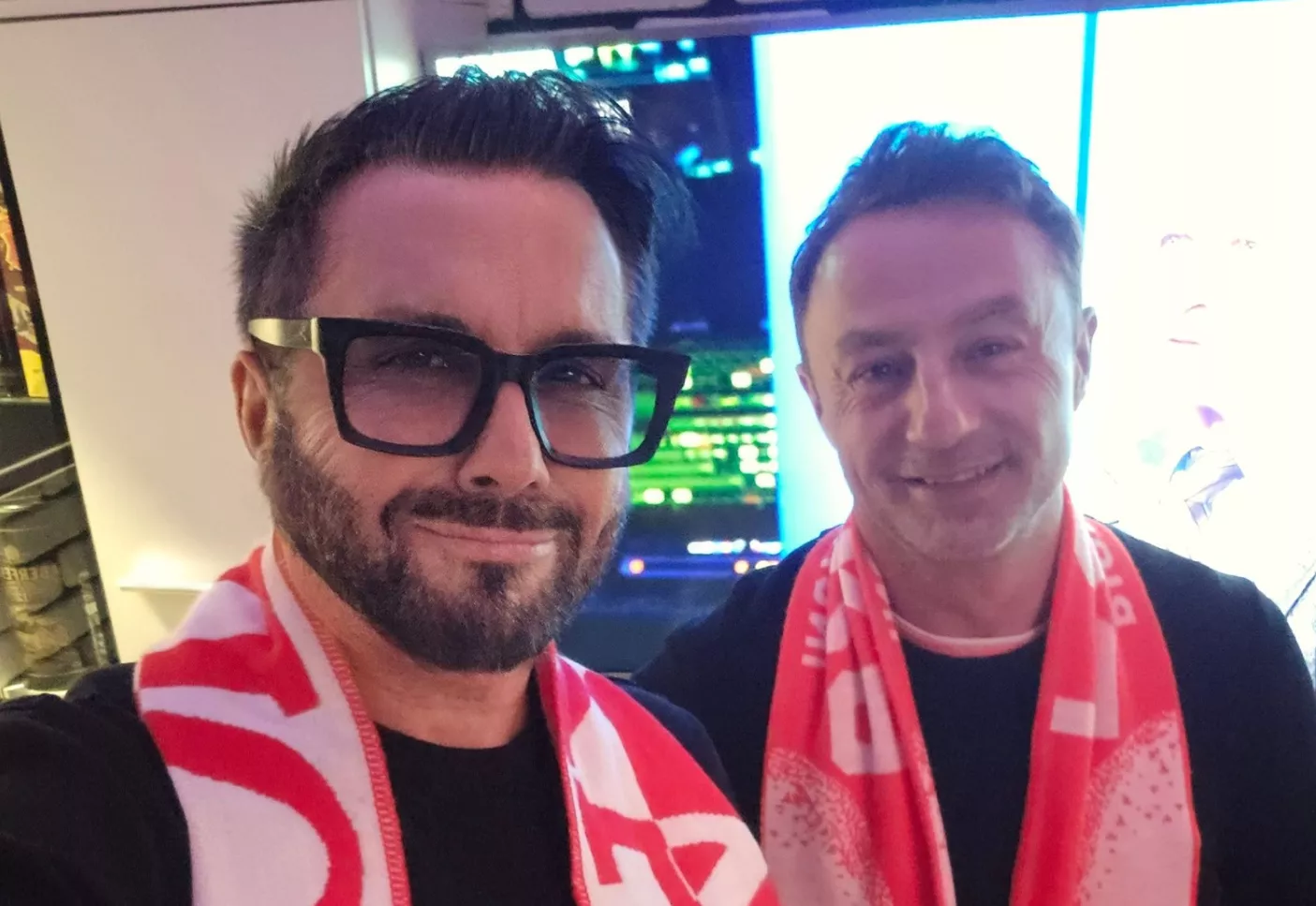W sieci pojawiło się zdjęcie, na którym Andre i Adam Domański pozują razem w biało-czerwonych szalikach. Artyści kibicują reprezentacji Polski w trakcie ważnego meczu barażowego przeciwko Szwecji. Obaj ubrani są na czarno, a uwagę przyciągają właśnie charakterystyczne szaliki w narodowych barwach z widocznym orłem.