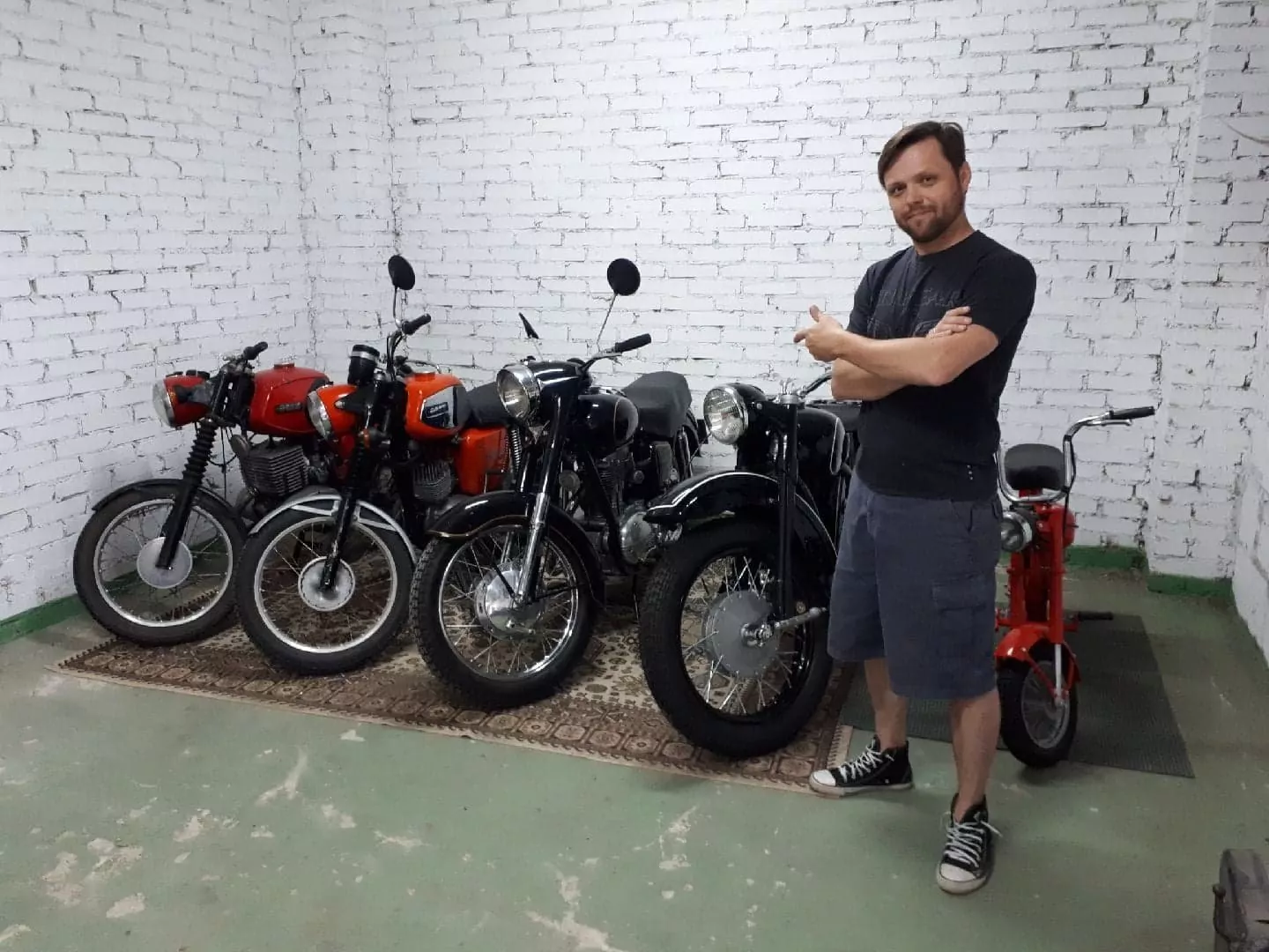 Wszystkie motocykle zabytkowe naprawiam i restauruje sam w stworzonym wspólnie z ojcem warsztacie w którym spędzam każdą wolną chwilę. W tej chwili zostawiłem tylko te modele motocykli które budzą we mnie jakieś emocje i wspomnienia motoryzacyjne A są to: Junak m-10 (63r), M-72 (58r), MZ ts250 (80r), MZ ts150 (83r), Motorynka pony (88r). Wszystkie mają specjalne pomieszczenie i stoją na dywanie - wyznał w rozmowie z nami Arek.