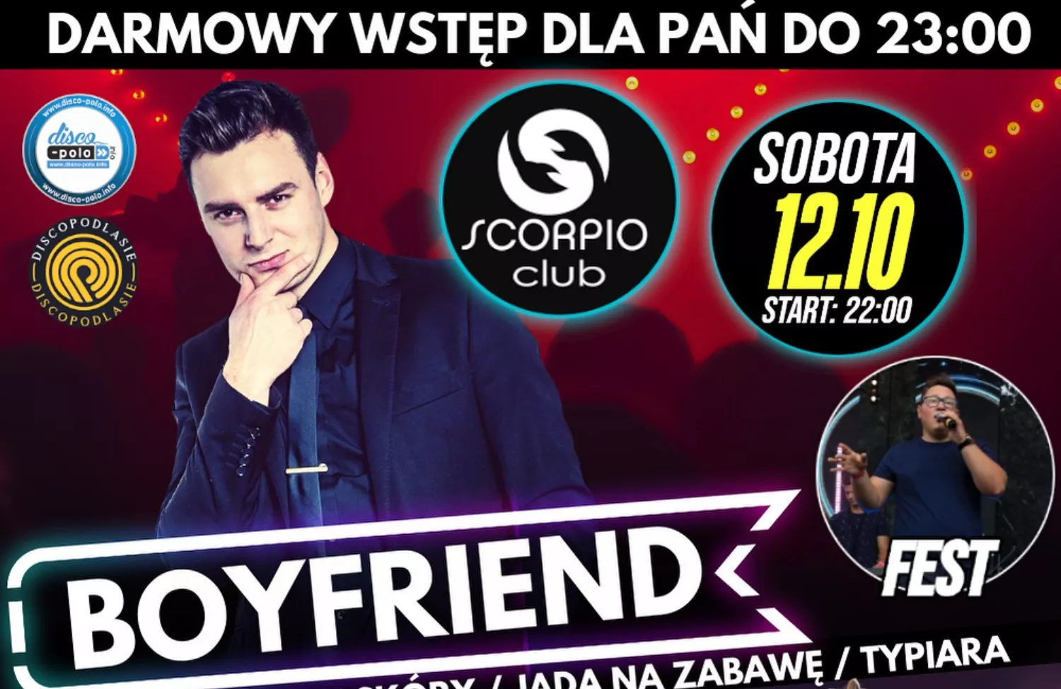 Start imprezy w klubie Scorpio planowany jest na godzinę 22:00. To miejsce znane jest z organizacji wyjątkowych koncertów i imprez, które zawsze przyciągają tłumy. Nie ma wątpliwości, że tym razem będzie podobnie! Tego wieczoru klub wypełnią dźwięki najlepszych hitów disco polo, a energia płynąca ze sceny sprawi, że parkiet będzie pękać w szwach.