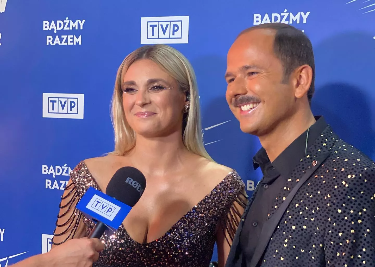 Kajra postanowiłą ubrać długą błyszczącą suknię z bardzo odważnym dekoltem. Cudowny makijaż oraz fryzura spowodowały, że wyglądała niezwykle pięknie. Sławomir postawił na czarną elegancką stylizację.