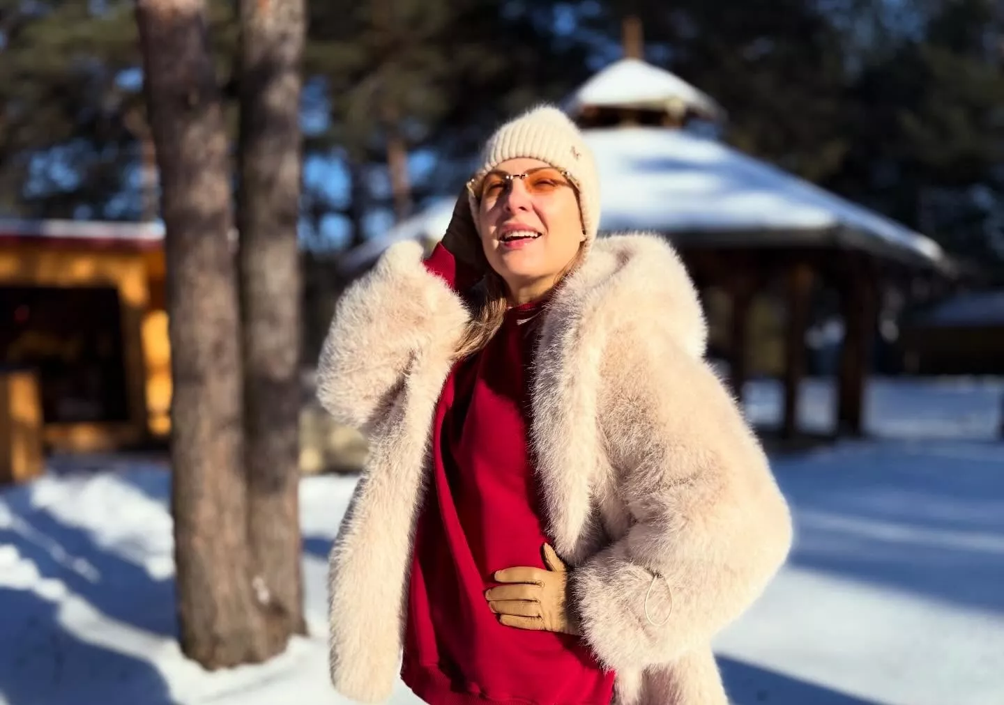 Na opublikowanych zdjęciach Magda Narożna pozuje w zimowej scenerii. Wokalistka wybrała stylowy zestaw w odcieniach czerwieni, który idealnie kontrastuje z bielą śniegu. Do ciepłego swetra i legginsów dobrała puszyste futerko w kolorze ecru oraz beżową czapkę i buty. Promienny uśmiech i naturalny luz na zdjęciach pokazują, że artystka czuje się świetnie w takim wydaniu.