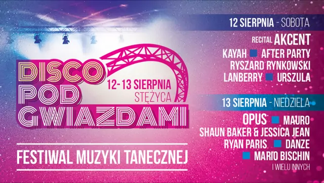 Po raz kolejny w Stężycy zagrają największe gwiazdy muzyki disco polo & dance, a wśród nich m.in. After Party, Mario Bischin oraz grupa Akcent, która będzie miała swój recital.
