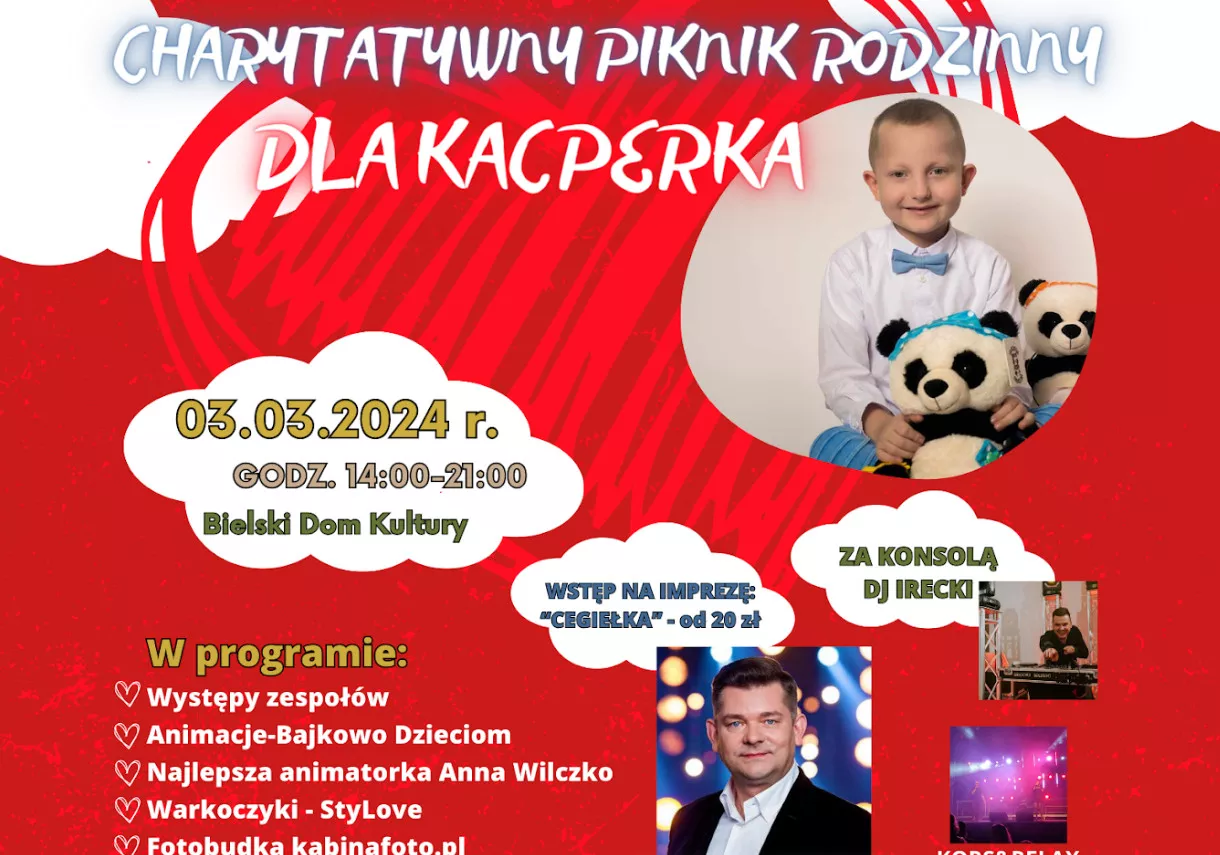 Nie przegap tego wyjątkowego wydarzenia, które łączy świat muzyki, dobroczynności i rodzinnej zabawy. Zapraszamy serdecznie wszystkich, którzy chcą wspólnie spędzić czas i wesprzeć Kacpra w jego walce o zdrowie. Do zobaczenia w Bielskim Domu Kultury!