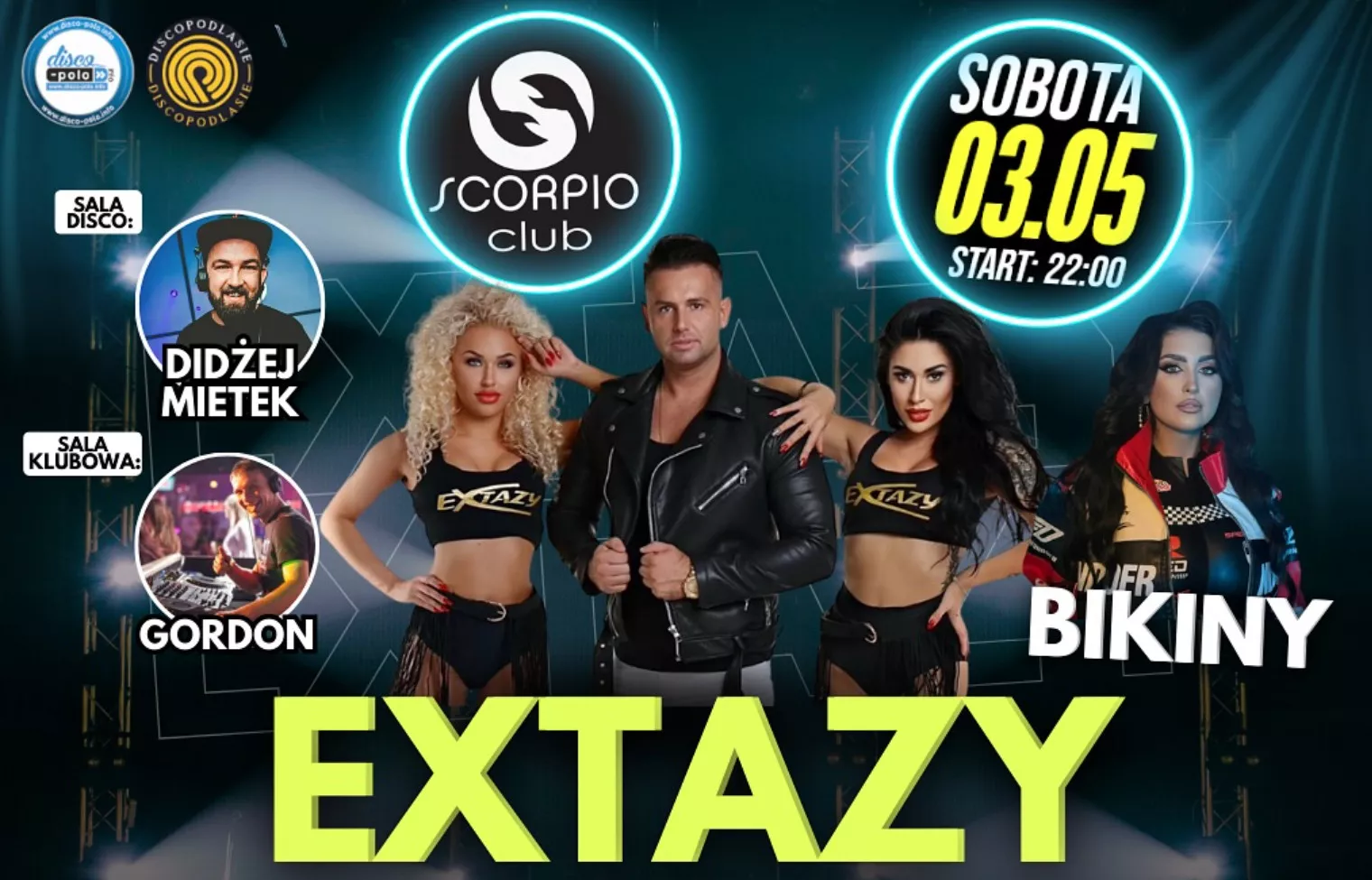 Podczas tej wyjątkowej nocy zespół Extazy przypomni także kolejny ze swoich hitów – utwór „Buzi to za mało”. Ten energetyczny kawałek zyskał ogromną popularność zarówno w stacjach radiowych, jak i na koncertach w całym kraju. Wokalista grupy doskonale wie, jak porwać publiczność do zabawy, a charakterystyczne brzmienie i chwytliwe refreny gwarantują, że parkiet będzie pełny od pierwszych minut. Klub Scorpio stanie się miejscem, gdzie muzyka i emocje stworzą niepowtarzalny klimat.