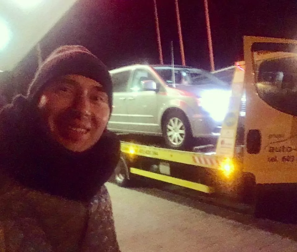 Niestety 15 kilometrów od klubu, auto odmówiło posłuszeństwa. Na szczęście na pomoc ruszyły przypadkowe osoby.