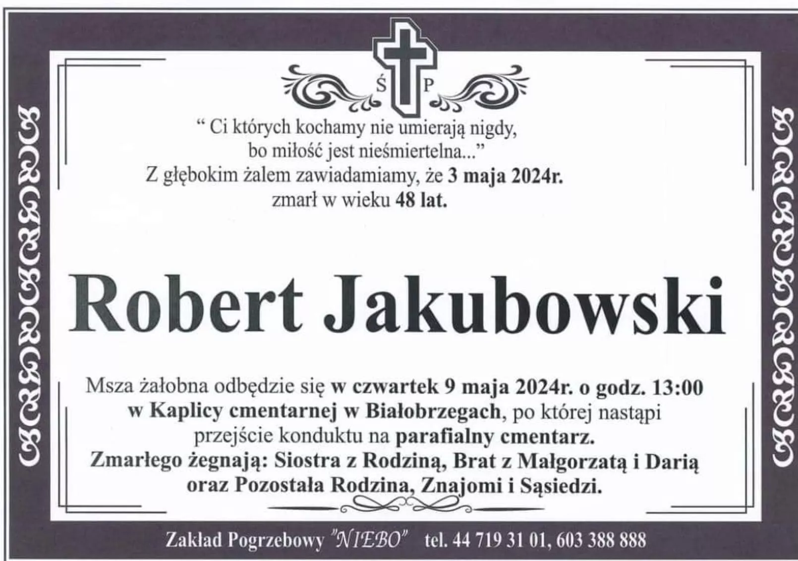 „Dziś odbyła się ostatnia droga w Tomaszowie Mazowieckim, naszego największego fana i kolegi Roberta Jakubowskiego Nasza delegacja wzięła udział w ostatnim pożegnaniu wraz z firmą pogrzebową 'MAJ' [] Jeszcze raz składamy wyrazy współczucia rodzinie i najbliższym [] Rip Robert, do zobaczenia tam na górze”.