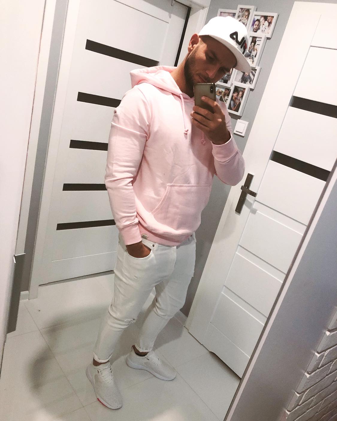 Wokalista zespołu Shantel udostępnił w sieci zdjęcie, na którym skompletował różową bluzę i białe spodnie, z podwiniętą nogawką "Idealna stylówka na wiosenne ciepełko", "No No ciacho", "Dobra stylówka" - komentują ubiór Konrada z zespołu Shantel internauci.