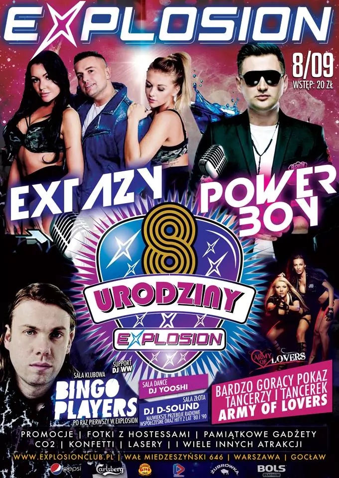 Strona główna › Koncerty › 8 Urodziny Explosion 2018 Koncert 8 Urodziny Explosion 2018 Sobota, 8 września 2018 Warszawa Zobacz plakat Miejsce Warszawa Data Sobota, 8 września 2018 Udostępnij Reklama Inne koncerty Wszystkie → Wielkanoc 2026 w Club Scorpio 05.04.2026 Wnory Wiechy Topky - Gorzko Gorzko Gdańsk 17.04.2026 Gdańsk Disco nad Czosem 3 19.06.2026 Mrągowo Kielecka Gala Disco Polo 2026 19.06.2026 Amfiteatr Kadzielnia - Kielce