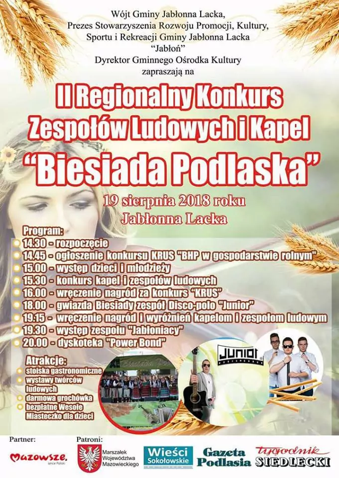 Strona główna › Koncerty › Biesiada Podlaska 2018 Koncert Biesiada Podlaska 2018 Niedziela, 19 sierpnia 2018 Jabłonna Lacka Zobacz plakat Miejsce Jabłonna Lacka Data Niedziela, 19 sierpnia 2018 Udostępnij Reklama Inne koncerty Wszystkie → Wielkanoc 2026 w Club Scorpio 05.04.2026 Wnory Wiechy Topky - Gorzko Gorzko Gdańsk 17.04.2026 Gdańsk Disco nad Czosem 3 19.06.2026 Mrągowo Kielecka Gala Disco Polo 2026 19.06.2026 Amfiteatr Kadzielnia - Kielce