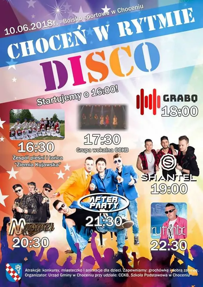 Strona główna › Koncerty › Choceń w rytmie Disco 2018 Koncert Choceń w rytmie Disco 2018 Niedziela, 10 czerwca 2018 Choceń Zobacz plakat Miejsce Choceń Data Niedziela, 10 czerwca 2018 Udostępnij Reklama Inne koncerty Wszystkie → Wielkanoc 2026 w Club Scorpio 05.04.2026 Wnory Wiechy Topky - Gorzko Gorzko Gdańsk 17.04.2026 Gdańsk Disco nad Czosem 3 19.06.2026 Mrągowo Kielecka Gala Disco Polo 2026 19.06.2026 Amfiteatr Kadzielnia - Kielce