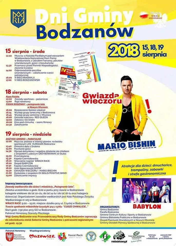 Strona główna › Koncerty › Dni Gminy Bodzanów 2018 Koncert Dni Gminy Bodzanów 2018 Sobota, 18 sierpnia 2018 Bodzanów Zobacz plakat Miejsce Bodzanów Data Sobota, 18 sierpnia 2018 Udostępnij Reklama Inne koncerty Wszystkie → Wielkanoc 2026 w Club Scorpio 05.04.2026 Wnory Wiechy Topky - Gorzko Gorzko Gdańsk 17.04.2026 Gdańsk Disco nad Czosem 3 19.06.2026 Mrągowo Kielecka Gala Disco Polo 2026 19.06.2026 Amfiteatr Kadzielnia - Kielce