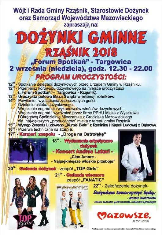 Strona główna › Koncerty › Dożynki Gminne - Rząśnik 2018 Koncert Dożynki Gminne - Rząśnik 2018 Adam Begier Dodano: 02.12.2020, 00:00 Miejsce Rząśnik Data Niedziela, 2 września 2018 Udostępnij Reklama Inne koncerty Wszystkie → Piękni i Młodzi - Club Best 2026 25.04.2026 Club Best Września Power Play - Klub Gorzelnia Łabunie 25.04.2026 Klub Gorzelnia, Łabunie Klaudia Zielińska - Teatro Gdynia - 25 kwietnia 25.04.2026 Teatro, Gdynia Łobuzy - Niech Żyje Bal Siedlce - 25 kwietnia 25.04.2026 Niech Żyje Bal, Siedlce