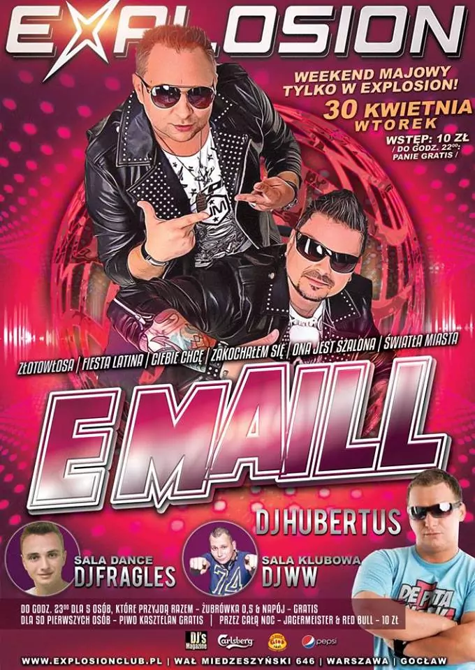 Strona główna › Koncerty › Explosion Club - E-Maill Koncert Explosion Club - E-Maill Wtorek, 30 kwietnia 2019 Warszawa Zobacz plakat Miejsce Warszawa Data Wtorek, 30 kwietnia 2019 Udostępnij Reklama Inne koncerty Wszystkie → Wielkanoc 2026 w Club Scorpio 05.04.2026 Wnory Wiechy Topky - Gorzko Gorzko Gdańsk 17.04.2026 Gdańsk Disco nad Czosem 3 19.06.2026 Mrągowo Kielecka Gala Disco Polo 2026 19.06.2026 Amfiteatr Kadzielnia - Kielce