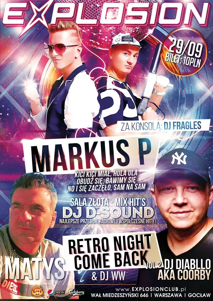 Strona główna › Koncerty › Explosion Club - Markus P Koncert Explosion Club - Markus P Adam Begier Dodano: 02.12.2020, 00:00 Miejsce Warszawa Data Sobota, 29 września 2018 Udostępnij Reklama Inne koncerty Wszystkie → Piękni i Młodzi - Club Best 2026 25.04.2026 Club Best Września Power Play - Klub Gorzelnia Łabunie 25.04.2026 Klub Gorzelnia, Łabunie Klaudia Zielińska - Teatro Gdynia - 25 kwietnia 25.04.2026 Teatro, Gdynia Łobuzy - Niech Żyje Bal Siedlce - 25 kwietnia 25.04.2026 Niech Żyje Bal, Siedlce