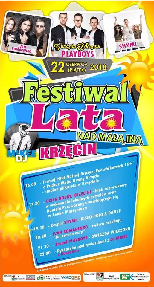 Strona główna › Koncerty › Festiwal Lata Krzęcin 2018 Koncert Festiwal Lata Krzęcin 2018 Piątek, 22 czerwca 2018 Krzęcin Zobacz plakat Miejsce Krzęcin Data Piątek, 22 czerwca 2018 Udostępnij Reklama Inne koncerty Wszystkie → Wielkanoc 2026 w Club Scorpio 05.04.2026 Wnory Wiechy Topky - Gorzko Gorzko Gdańsk 17.04.2026 Gdańsk Disco nad Czosem 3 19.06.2026 Mrągowo Kielecka Gala Disco Polo 2026 19.06.2026 Amfiteatr Kadzielnia - Kielce