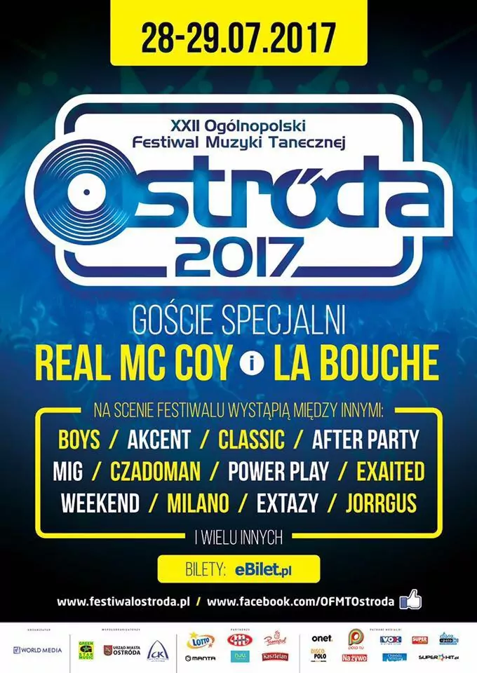 Strona główna › Koncerty › Festiwal Ostróda 2017 Koncert Festiwal Ostróda 2017 Czwartek, 27 lipca 2017 Ostróda Zobacz plakat Miejsce Ostróda Data Czwartek, 27 lipca 2017 Udostępnij Reklama Powiązane artykuły MiłyPan, Defis i Topky podbili scenę na Disco Festiwal Ostróda 2024 z przebojem „Jeden Taniec Jedna Noc” 13.09.2024, 19:22 Festiwal Ostróda 2018: Sobota: Debiuty, Koncert premier (bez grupy Akcent), Mandaryna! Lista wykonawców, bilety, VIP oraz transmisja live w TV! 28.07.2018, 18:21 Ruszyła sprzedaż biletów na : Festiwal Ostróda 2017 27.01.2017, 17:35 Festiwal Ostróda: D-Bomb - wywiad i relacja 08.09.2015, 01:23 Festiwal Ostróda: Temptation Pułtusk - wywiad 04.09.2015, 16:26 Festiwal Ostróda: Mig - relacja i wywiad 24.08.2015, 02:24 Festiwal Ostróda: Camasutra - wywiad i relacja 13.08.2015, 16:10 Festiwal Ostróda: Exaited & Maciek Smoliński - relacja i wywiad 09.08.2015, 02:03 Festiwal Ostróda: 25-lecie Boys - relacja i wywiad 07.08.2015, 02:03 Festiwal Ostróda: Freaky Boys - relacja i wywiad 04.08.2015, 21:52 Festiwal Ostróda: Mario Bischin - wywiad 03.08.2015, 21:08 Festiwal Ostróda 2015: wywiad z After Party 29.07.2015, 21:14 Festiwal Ostróda: Koncert Gwiazd i najnowsze info 07.07.2015, 22:23 Festiwal Ostróda ogłasza konkurs: zostań fanem 20-lecia! 04.07.2015, 15:00 Festiwal Ostróda: Debiutanci 02.07.2015, 16:26 Festiwal Ostróda: Loona zaprasza na gorącą imprezę 16.06.2015, 13:53 Pokaż więcej (8) Inne koncerty Wszystkie → Wielkanoc 2026 w Club Scorpio 05.04.2026 Wnory Wiechy Topky - Gorzko Gorzko Gdańsk 17.04.2026 Gdańsk Disco nad Czosem 3 19.06.2026 Mrągowo Kielecka Gala Disco Polo 2026 19.06.2026 Amfiteatr Kadzielnia - Kielce