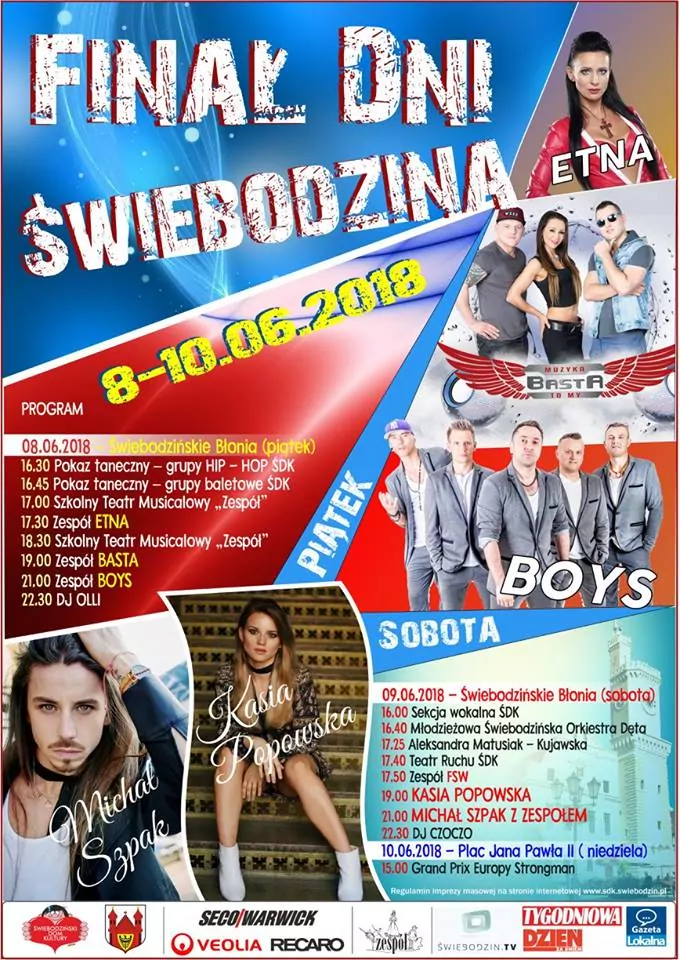 Strona główna › Koncerty › Finał Dni Świebodzina 2018 Koncert Finał Dni Świebodzina 2018 Piątek, 8 czerwca 2018 Świebodzin Zobacz plakat Miejsce Świebodzin Data Piątek, 8 czerwca 2018 Udostępnij Reklama Inne koncerty Wszystkie → Wielkanoc 2026 w Club Scorpio 05.04.2026 Wnory Wiechy Topky - Gorzko Gorzko Gdańsk 17.04.2026 Gdańsk Disco nad Czosem 3 19.06.2026 Mrągowo Kielecka Gala Disco Polo 2026 19.06.2026 Amfiteatr Kadzielnia - Kielce