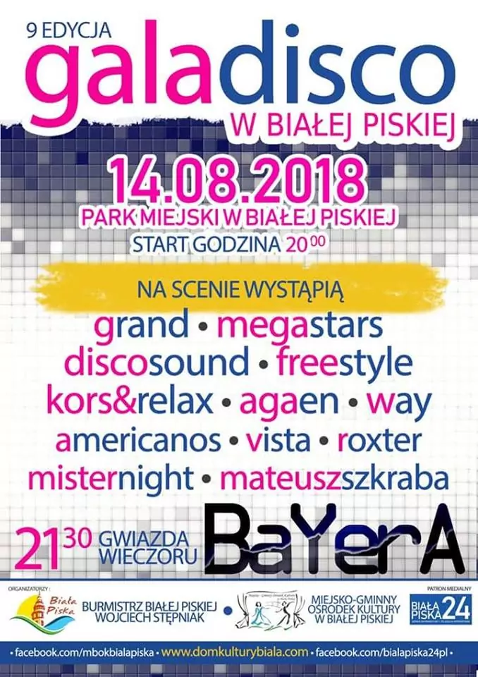Strona główna › Koncerty › Gala Disco 2018 w Białej Piskiej Koncert Gala Disco 2018 w Białej Piskiej Wtorek, 14 sierpnia 2018 Biała Piska Zobacz plakat Miejsce Biała Piska Data Wtorek, 14 sierpnia 2018 Udostępnij Reklama Inne koncerty Wszystkie → Wielkanoc 2026 w Club Scorpio 05.04.2026 Wnory Wiechy Topky - Gorzko Gorzko Gdańsk 17.04.2026 Gdańsk Disco nad Czosem 3 19.06.2026 Mrągowo Kielecka Gala Disco Polo 2026 19.06.2026 Amfiteatr Kadzielnia - Kielce