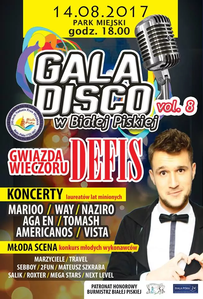 Strona główna › Koncerty › Gala Disco w Białej Piskiej 2017 vol. 8 Koncert Gala Disco w Białej Piskiej 2017 vol. 8 Poniedziałek, 14 sierpnia 2017 Biała Piska Zobacz plakat Miejsce Biała Piska Data Poniedziałek, 14 sierpnia 2017 Udostępnij Reklama Inne koncerty Wszystkie → Wielkanoc 2026 w Club Scorpio 05.04.2026 Wnory Wiechy Topky - Gorzko Gorzko Gdańsk 17.04.2026 Gdańsk Disco nad Czosem 3 19.06.2026 Mrągowo Kielecka Gala Disco Polo 2026 19.06.2026 Amfiteatr Kadzielnia - Kielce