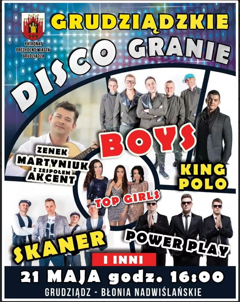 Strona główna › Koncerty › Grudziądzkie Disco Grania Koncert Grudziądzkie Disco Grania Niedziela, 21 maja 2017 Grudziądz Zobacz plakat Miejsce Grudziądz Data Niedziela, 21 maja 2017 Udostępnij Reklama Inne koncerty Wszystkie → Wielkanoc 2026 w Club Scorpio 05.04.2026 Wnory Wiechy Topky - Gorzko Gorzko Gdańsk 17.04.2026 Gdańsk Disco nad Czosem 3 19.06.2026 Mrągowo Kielecka Gala Disco Polo 2026 19.06.2026 Amfiteatr Kadzielnia - Kielce