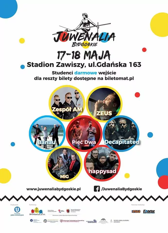 Strona główna › Koncerty › Juwenalia Bydgoskie 2018 Koncert Juwenalia Bydgoskie 2018 Czwartek, 17 maja 2018 Bydgoszcz Zobacz plakat Miejsce Bydgoszcz Data Czwartek, 17 maja 2018 Udostępnij Reklama Inne koncerty Wszystkie → Wielkanoc 2026 w Club Scorpio 05.04.2026 Wnory Wiechy Topky - Gorzko Gorzko Gdańsk 17.04.2026 Gdańsk Disco nad Czosem 3 19.06.2026 Mrągowo Kielecka Gala Disco Polo 2026 19.06.2026 Amfiteatr Kadzielnia - Kielce