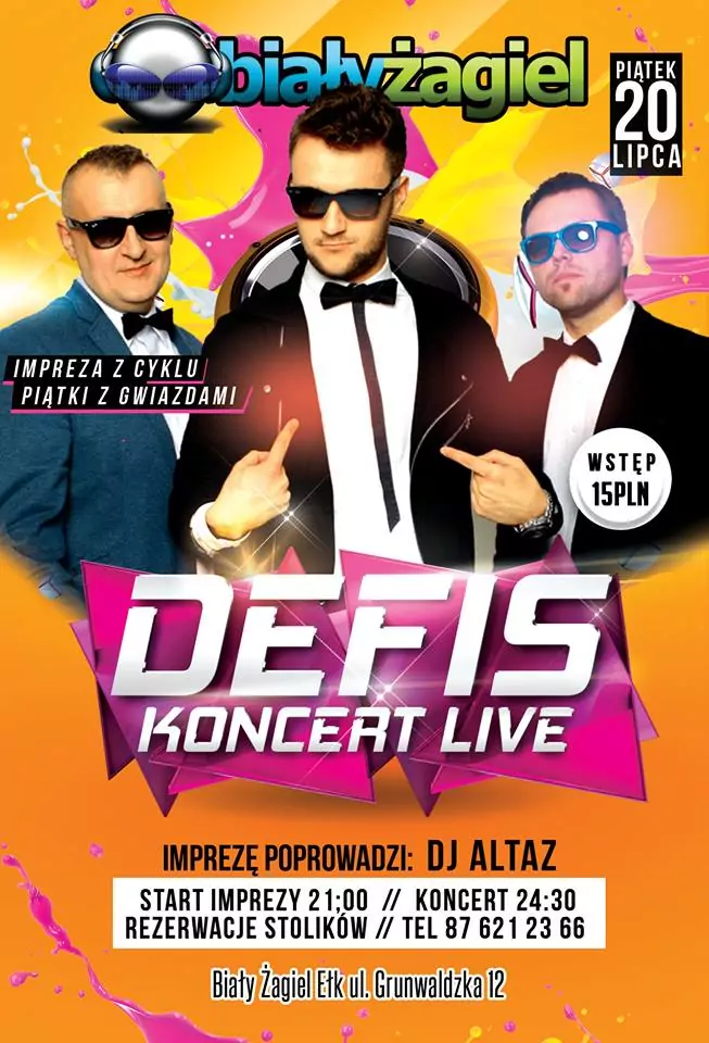 Strona główna › Koncerty › Karczma Biały Żagiel - Defis Koncert Karczma Biały Żagiel - Defis Adam Begier Dodano: 02.12.2020, 00:00 Miejsce Ełk Data Piątek, 20 lipca 2018 Udostępnij Reklama Inne koncerty Wszystkie → Piękni i Młodzi - Club Best 2026 25.04.2026 Club Best Września Power Play - Klub Gorzelnia Łabunie 25.04.2026 Klub Gorzelnia, Łabunie Klaudia Zielińska - Teatro Gdynia - 25 kwietnia 25.04.2026 Teatro, Gdynia Łobuzy - Niech Żyje Bal Siedlce - 25 kwietnia 25.04.2026 Niech Żyje Bal, Siedlce