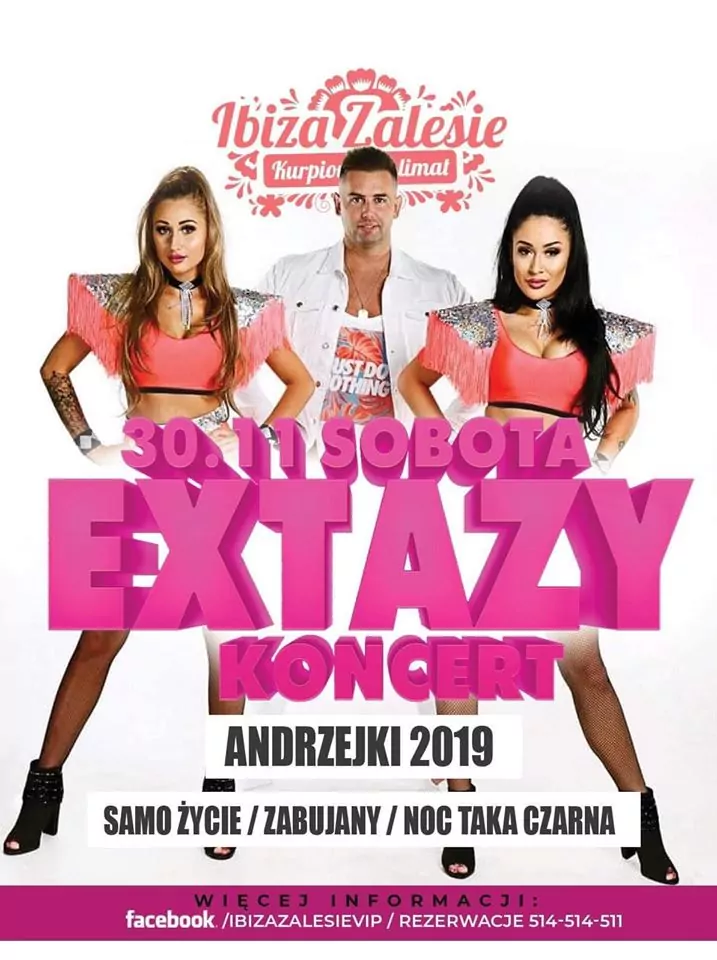 Strona główna › Koncerty › Klub Ibiza Zalesie - Extazy Koncert Klub Ibiza Zalesie - Extazy Sobota, 30 listopada 2019 Zalesie Zobacz plakat Miejsce Zalesie Data Sobota, 30 listopada 2019 Udostępnij Reklama Inne koncerty Wszystkie → Topky - Gorzko Gorzko Gdańsk 17.04.2026 Gdańsk Disco nad Czosem 3 19.06.2026 Mrągowo Kielecka Gala Disco Polo 2026 19.06.2026 Amfiteatr Kadzielnia - Kielce Wakacyjny Koncert Gwiazd Opole 2026 01.08.2026 Opole
