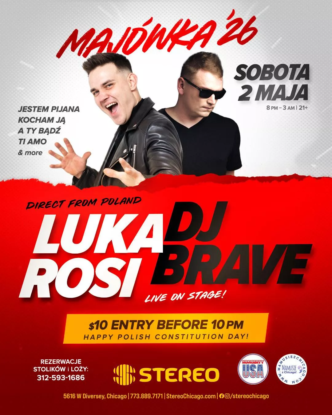 2 maja 2026 roku (sobota) w Chicago odbędzie się Majówka '26. Wydarzenie zostanie zorganizowane w klubie Stereo przy 5616 W Diversey. Na scenie wystąpi Luka Rosi oraz DJ Brave.