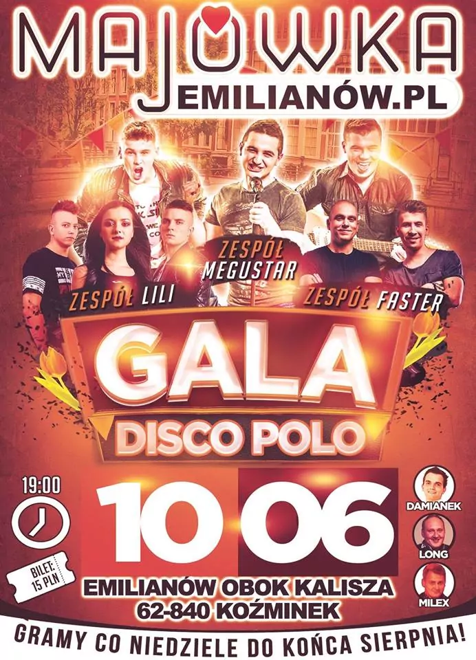 Strona główna › Koncerty › Majówka Emilianów - Gala Disco Polo 2018 Koncert Majówka Emilianów - Gala Disco Polo 2018 Adam Begier Dodano: 02.12.2020, 00:00 Miejsce Emilianów Data Niedziela, 10 czerwca 2018 Udostępnij Reklama Inne koncerty Wszystkie → Piękni i Młodzi - Club Best 2026 25.04.2026 Club Best Września Power Play - Klub Gorzelnia Łabunie 25.04.2026 Klub Gorzelnia, Łabunie Klaudia Zielińska - Teatro Gdynia - 25 kwietnia 25.04.2026 Teatro, Gdynia Łobuzy - Niech Żyje Bal Siedlce - 25 kwietnia 25.04.2026 Niech Żyje Bal, Siedlce