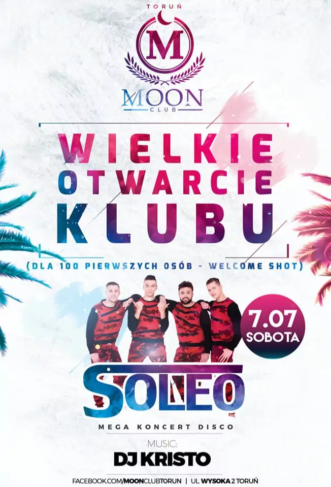 Strona główna › Koncerty › Moon Club - Soleo Koncert Moon Club - Soleo Adam Begier Dodano: 02.12.2020, 00:00 Miejsce Wrocław Data Sobota, 7 lipca 2018 Udostępnij Reklama Inne koncerty Wszystkie → Piękni i Młodzi - Club Best 2026 25.04.2026 Club Best Września Power Play - Klub Gorzelnia Łabunie 25.04.2026 Klub Gorzelnia, Łabunie Klaudia Zielińska - Teatro Gdynia - 25 kwietnia 25.04.2026 Teatro, Gdynia Łobuzy - Niech Żyje Bal Siedlce - 25 kwietnia 25.04.2026 Niech Żyje Bal, Siedlce