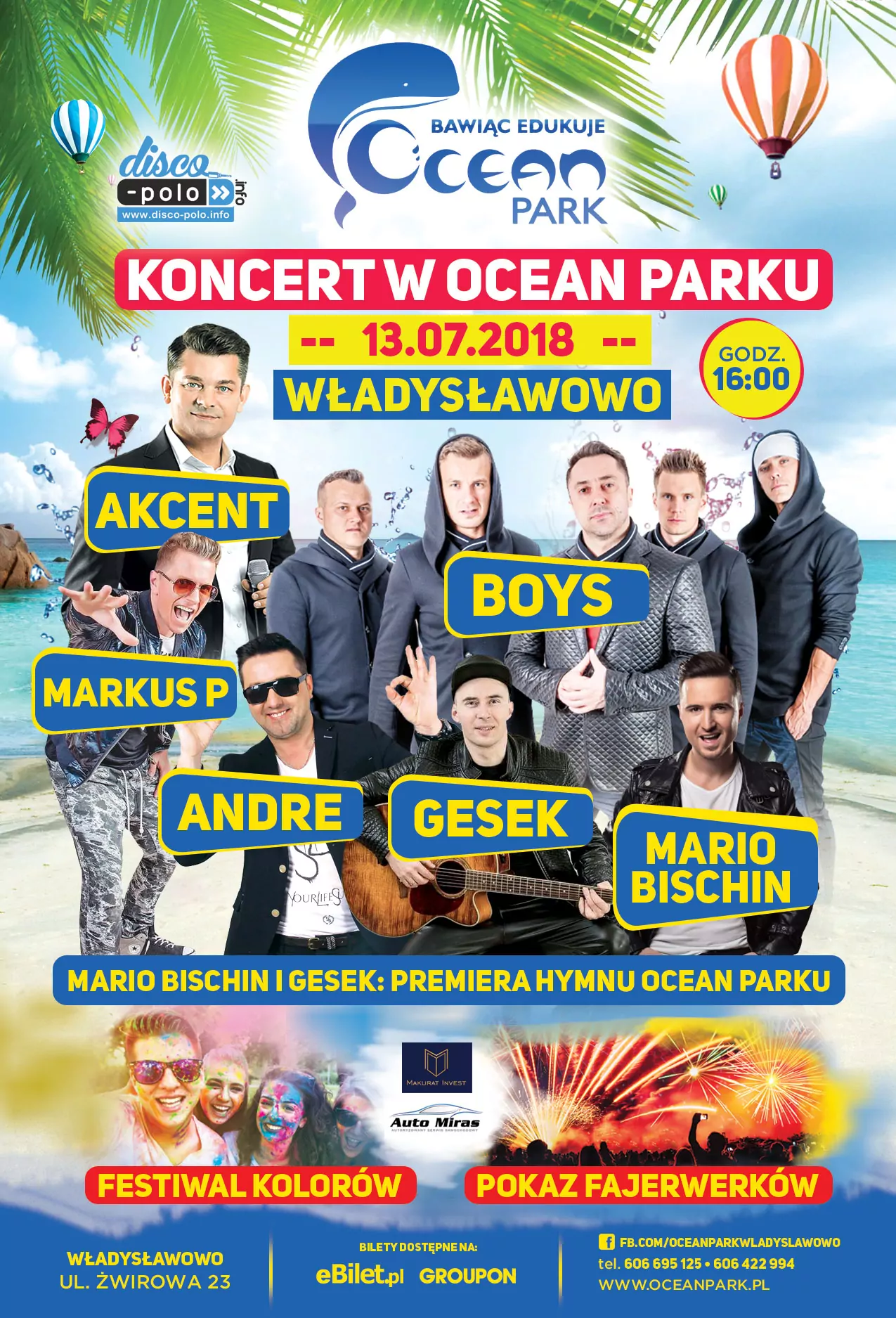 Strona główna › Koncerty › Ocean Park 2018 - 13 lipca Koncert Ocean Park 2018 - 13 lipca Adam Begier Dodano: 02.12.2020, 00:00 Miejsce Władysławowo Data Piątek, 13 lipca 2018 Udostępnij Reklama Inne koncerty Wszystkie → Piękni i Młodzi - Club Best 2026 25.04.2026 Club Best Września Power Play - Klub Gorzelnia Łabunie 25.04.2026 Klub Gorzelnia, Łabunie Klaudia Zielińska - Teatro Gdynia - 25 kwietnia 25.04.2026 Teatro, Gdynia Łobuzy - Niech Żyje Bal Siedlce - 25 kwietnia 25.04.2026 Niech Żyje Bal, Siedlce