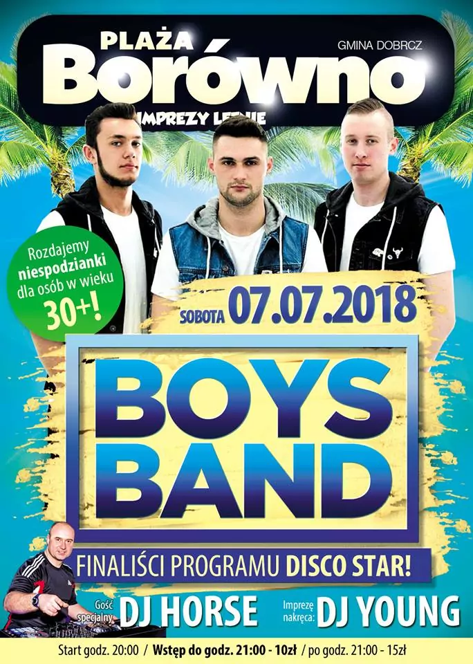 Strona główna › Koncerty › Plaża Borówno - Boys Band Koncert Plaża Borówno - Boys Band Sobota, 7 lipca 2018 Borówno Zobacz plakat Miejsce Borówno Data Sobota, 7 lipca 2018 Udostępnij Reklama Inne koncerty Wszystkie → Wielkanoc 2026 w Club Scorpio 05.04.2026 Wnory Wiechy Topky - Gorzko Gorzko Gdańsk 17.04.2026 Gdańsk Disco nad Czosem 3 19.06.2026 Mrągowo Kielecka Gala Disco Polo 2026 19.06.2026 Amfiteatr Kadzielnia - Kielce