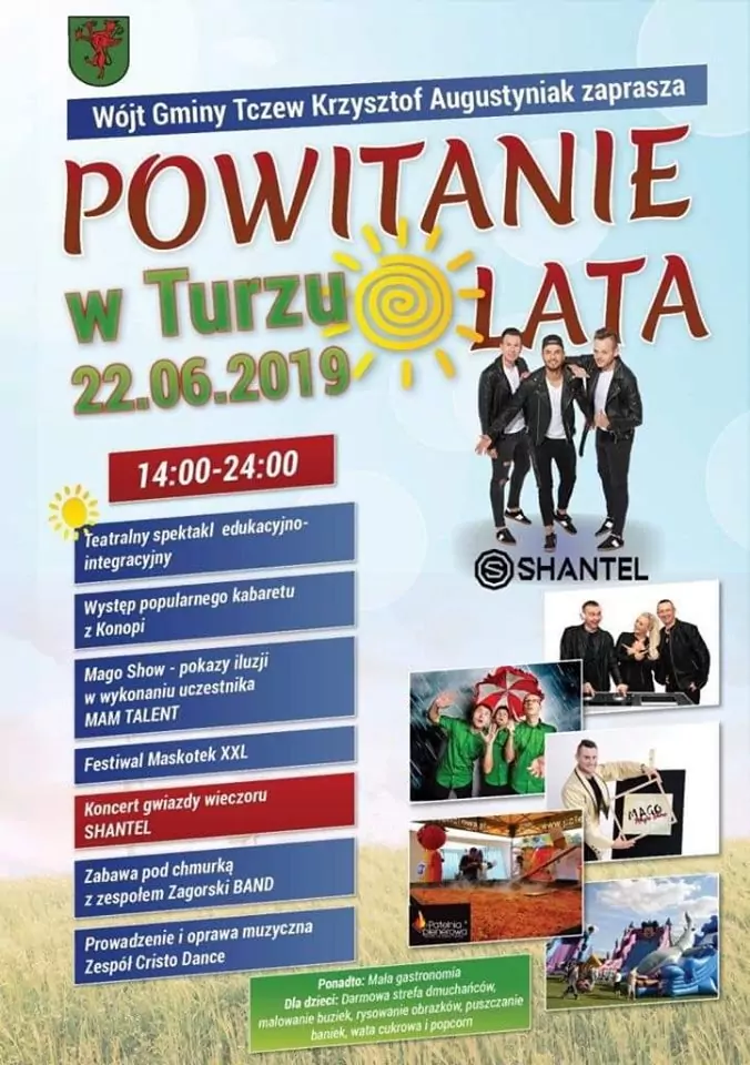 Strona główna › Koncerty › Powitanie Lata w Turzu 2019 Wydarzenie archiwalne Powitanie Lata w Turzu 2019 Sobota, 22 czerwca 2019 Turz Udostępnij Inne koncerty Wszystkie → Festiwal Weselnych Przebojów 2026 14.08.2026 Mrągowo