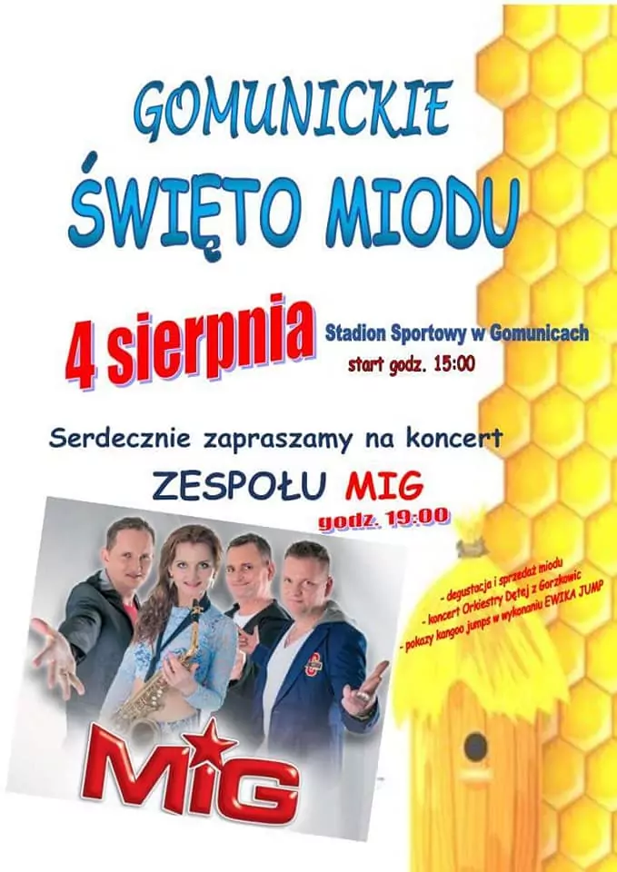 Strona główna › Koncerty › Święto Miodu 2018 Koncert Święto Miodu 2018 Sobota, 4 sierpnia 2018 Gomunice Zobacz plakat Miejsce Gomunice Data Sobota, 4 sierpnia 2018 Udostępnij Reklama Inne koncerty Wszystkie → Wielkanoc 2026 w Club Scorpio 05.04.2026 Wnory Wiechy Topky - Gorzko Gorzko Gdańsk 17.04.2026 Gdańsk Disco nad Czosem 3 19.06.2026 Mrągowo Kielecka Gala Disco Polo 2026 19.06.2026 Amfiteatr Kadzielnia - Kielce