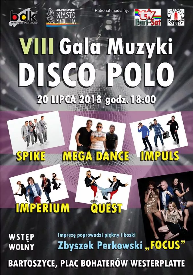 Strona główna › Koncerty › VIII Gala Muzyki Disco Polo - Bartoszyce 2018 Koncert VIII Gala Muzyki Disco Polo - Bartoszyce 2018 Piątek, 20 lipca 2018 Bartoszyce Zobacz plakat Miejsce Bartoszyce Data Piątek, 20 lipca 2018 Udostępnij Reklama Inne koncerty Wszystkie → Wielkanoc 2026 w Club Scorpio 05.04.2026 Wnory Wiechy Topky - Gorzko Gorzko Gdańsk 17.04.2026 Gdańsk Disco nad Czosem 3 19.06.2026 Mrągowo Kielecka Gala Disco Polo 2026 19.06.2026 Amfiteatr Kadzielnia - Kielce