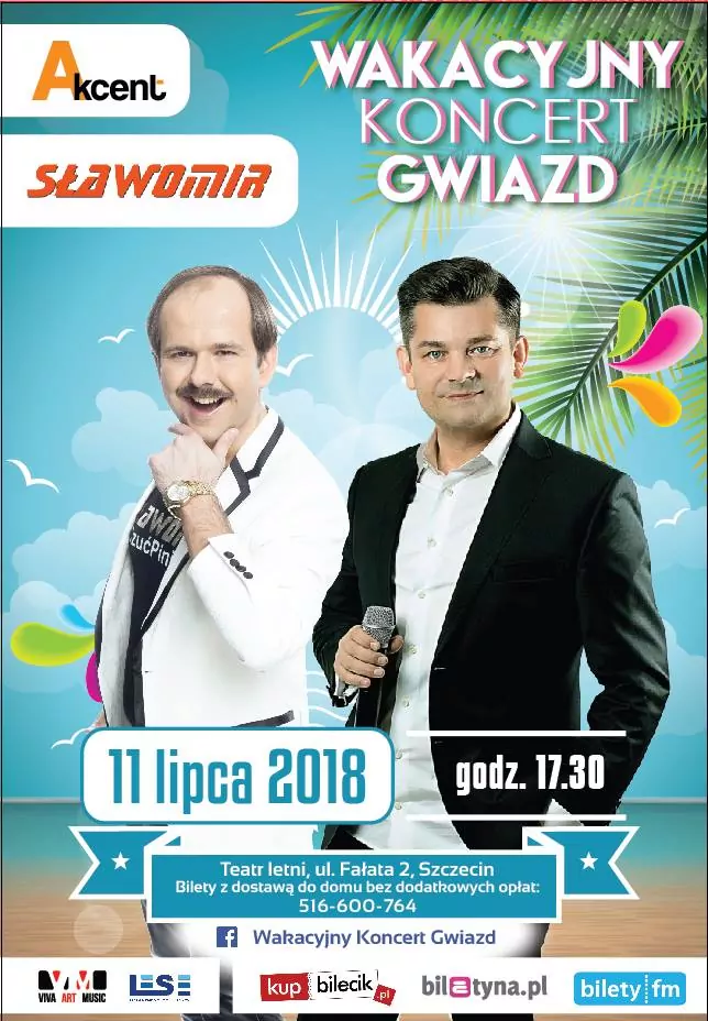 Strona główna › Koncerty › Wakacyjny Koncert Gwiazd - Sławomir & Akcent Koncert Wakacyjny Koncert Gwiazd - Sławomir & Akcent Adam Begier Dodano: 02.12.2020, 00:00 Miejsce Szczecin Data środa, 11 lipca 2018 Udostępnij Reklama Inne koncerty Wszystkie → Piękni i Młodzi - Club Best 2026 25.04.2026 Club Best Września Power Play - Klub Gorzelnia Łabunie 25.04.2026 Klub Gorzelnia, Łabunie Klaudia Zielińska - Teatro Gdynia - 25 kwietnia 25.04.2026 Teatro, Gdynia Łobuzy - Niech Żyje Bal Siedlce - 25 kwietnia 25.04.2026 Niech Żyje Bal, Siedlce