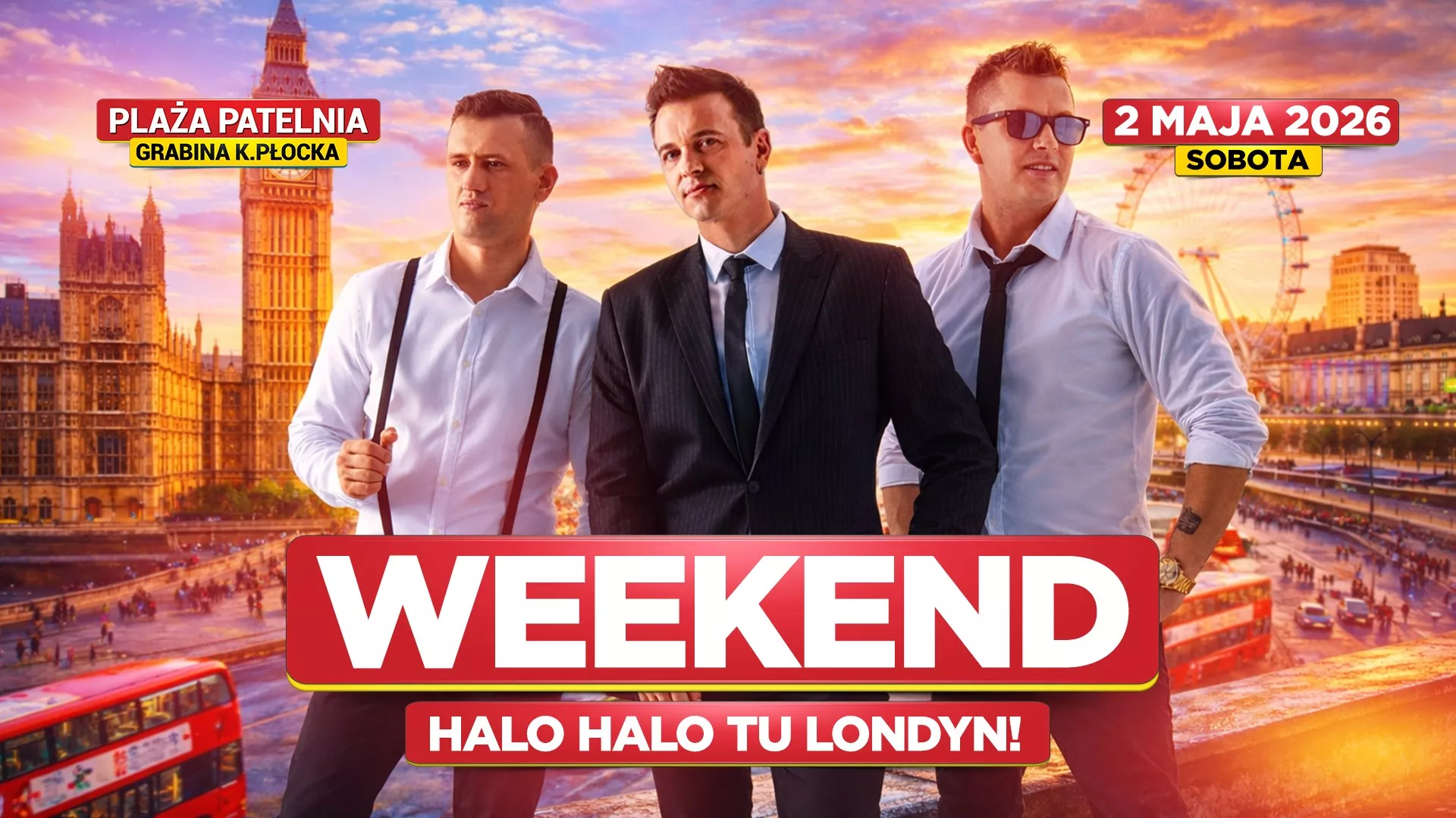 Zespół Weekend wystąpi 2 maja 2026 na terenie Plaży Patelnia w Grabinie koło Płocka. Koncert rozpocznie się o godzinie 20:00 i będzie częścią majówkowych wydarzeń nad wodą.
