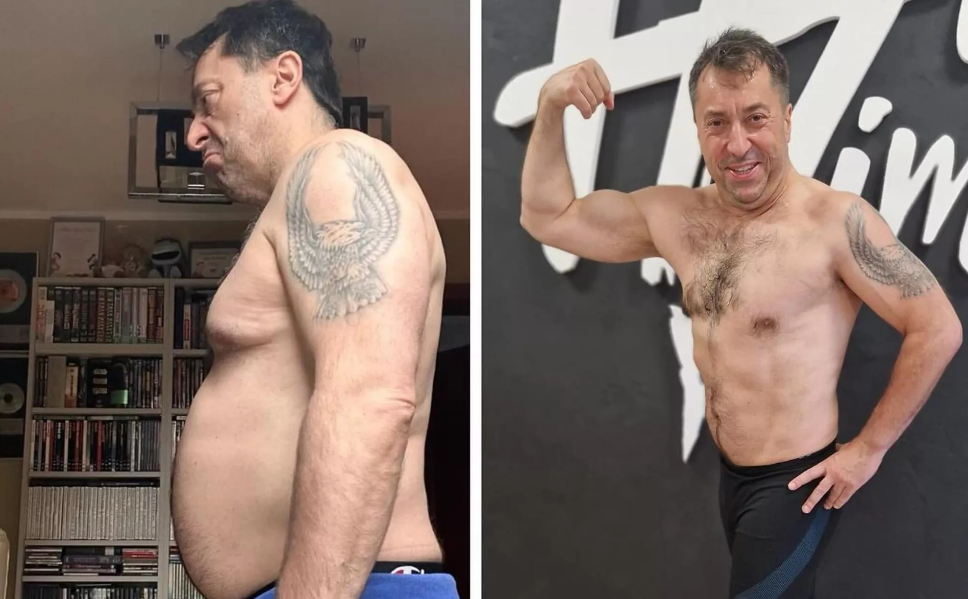 "Wziąłem się ostro za siebie, na sali ćwiczeń wyciskam z siebie siódme poty. Już zrzuciłem z pięć kilogramów, ale nie spoczywam na laurach," mówi artysta.