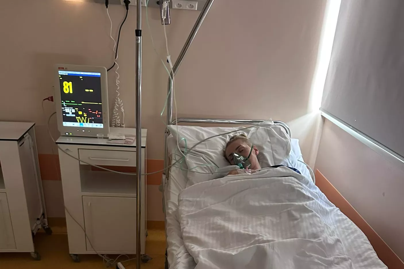 Na opublikowanym zdjęciu widać Joannę Narożną leżącą w szpitalnym łóżku pod maską tlenową. Do fotografii Dawid Narożny dołączył krótki, osobisty komentarz: