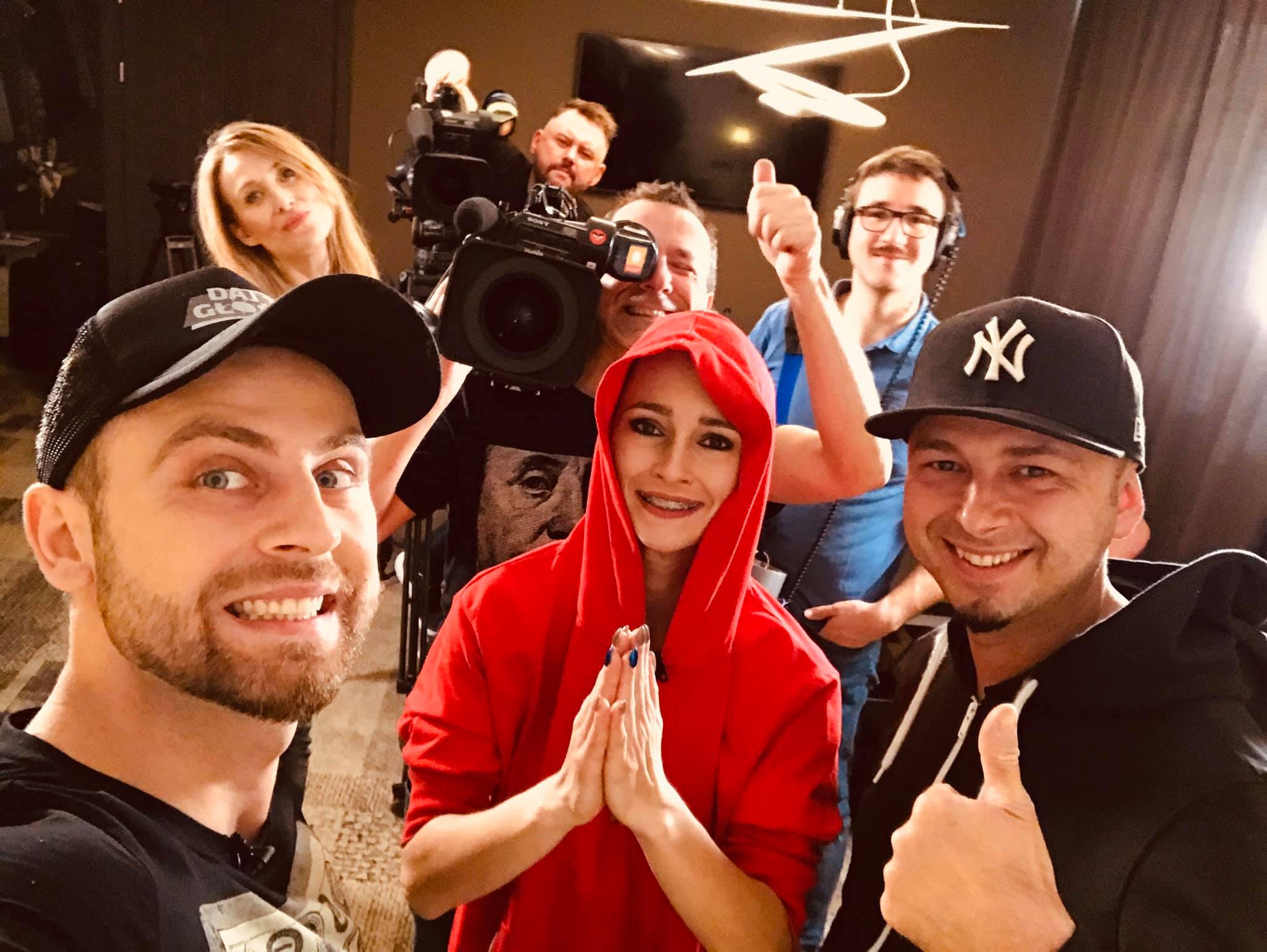 "Specjalnie dla ekipy Polsatu opowiedzieliśmy trochę o tym co u nas i nakręciliśmy zajawkę na sylwestrowa moc przebojów. Zatem już teraz zapraszamy przed telewizory" - napisał zespół Daj to Głośniej udostępniając zdjęcie z nagrań.