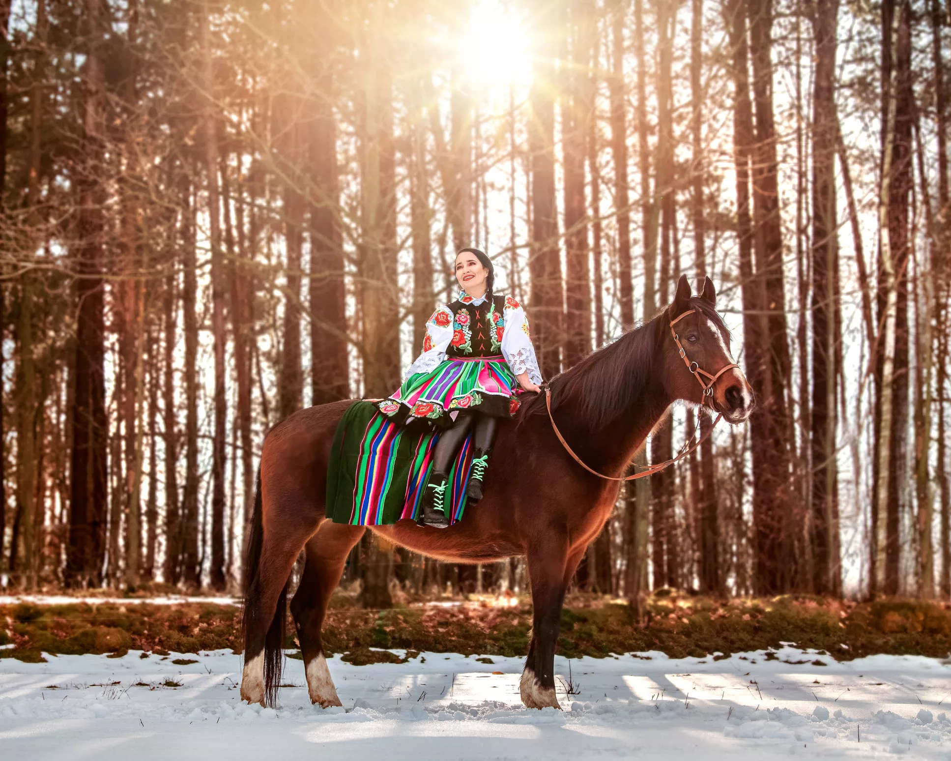 Fotografie przedstawiają Emilię w bardzo ludowym wydaniu. Gwiazda pozuje w folkowym stroju, zachwycając wszystkich oglądających. U boku piosenkarki występują majestatyczne konie, które dodają swojskości tej publikacji. Artystka wygląda zjawiskowo, a jej uśmiech potęguje pozytywne emocje wśród oglądających.