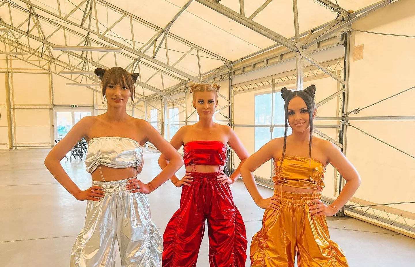 Każda z wokalistek zespołu Szpilki wystąpiła w unikalnym, odblaskowym stroju, który od razu przyciągał wzrok. Szerokie spodnie i krótki top z odkrytymi ramionami tworzyły niezwykle efektowną kompozycję. Co więcej, każda z dziewczyn miała swój własny kolor stroju - srebrny, czerwony i złoty.