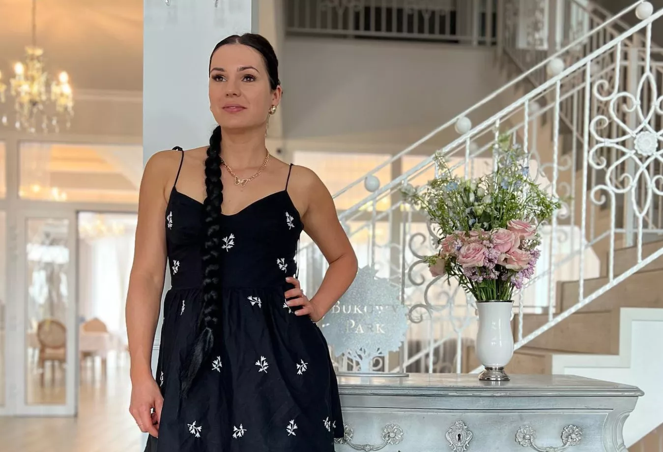 Sylwia postanowiła zaskoczyć swoich fanów nie tylko swoim wokalem, ale także niesamowitą stylizacją. Na scenie widzimy ją w pięknie wykonanych, czarnych warkoczach, które zdobią kwiaty. To niezwykle efektowne i oryginalne uczesanie podkreśla jej naturalne piękno i dodaje uroku. Dodatkowo, Sylwia Morcinek założyła kwiecistą sukienkę, która doskonale komponuje się z całą stylizacją. Jej wybór ubioru jest znakomity, ponieważ dodaje jej subtelności i kobiecości.