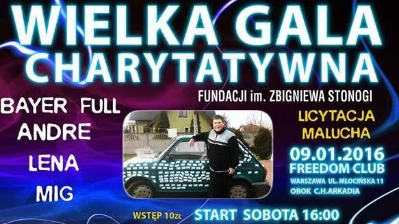 Andre, Bayer Full, Mig oraz Lena wystąpią na koncercie charytatywnym Fundacji Zbigniewa Stonogi pod nazwą „Wielka Charytatywna Gala Disco Polo” odbędzie się w godzinach od 16:00 do 20:00 w warszawskim klubie Freedom przy ulicy Młocińskiej 11.