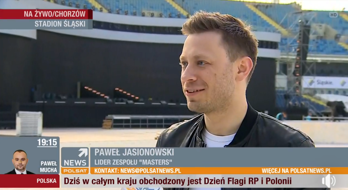 "nie byłoby żadnego koncertu Mastersa bez naszego największego przeboju "Żono moja" i to utwór, który z wielką radością wykonuję na każdym ze swoich koncertów, z wielką radością również dlatego, że to publiczność śpiewa ten utwór również z nami i mam nadzieję, a właściwie jestem przekonany, że też tak będzie na Stadionie Śląskim - przyznał w rozmowie z Mateuszem Białkowskim z Polsat News Paweł Jasionowski